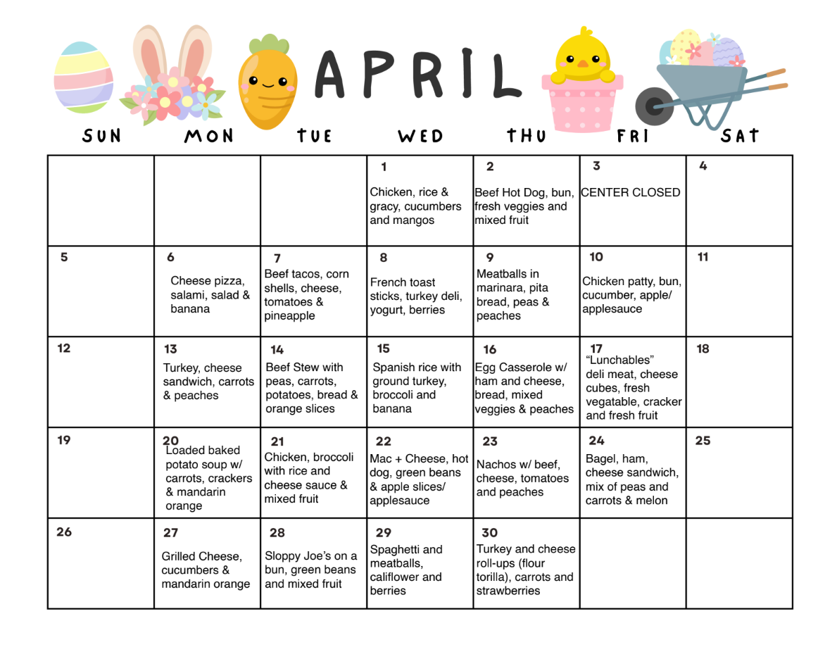 Smarty Pants Learning Center provides delicious and healthy lunch each day. Check in here before/during each month to see what we are serving!